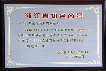 本網(wǎng)訊 日前,根據(jù)《浙江省企業(yè)商號(hào)管理和保護(hù)規(guī)定》、《浙江省知名商號(hào)認(rèn)定辦法》規(guī)定,經(jīng)浙江省知名商號(hào)評(píng)審委員會(huì)審核通過,浙江省工商行政管理局認(rèn)定116個(gè)企業(yè)商號(hào)為浙江省知名商號(hào)。我司“賽爾(國際貿(mào)易)”商號(hào)榜上有名,有效期為6。