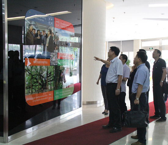 領導一行先后參觀了集團財務結算中心、各子公司業務人員辦公區域、集團產品展示中心和產品在線部。