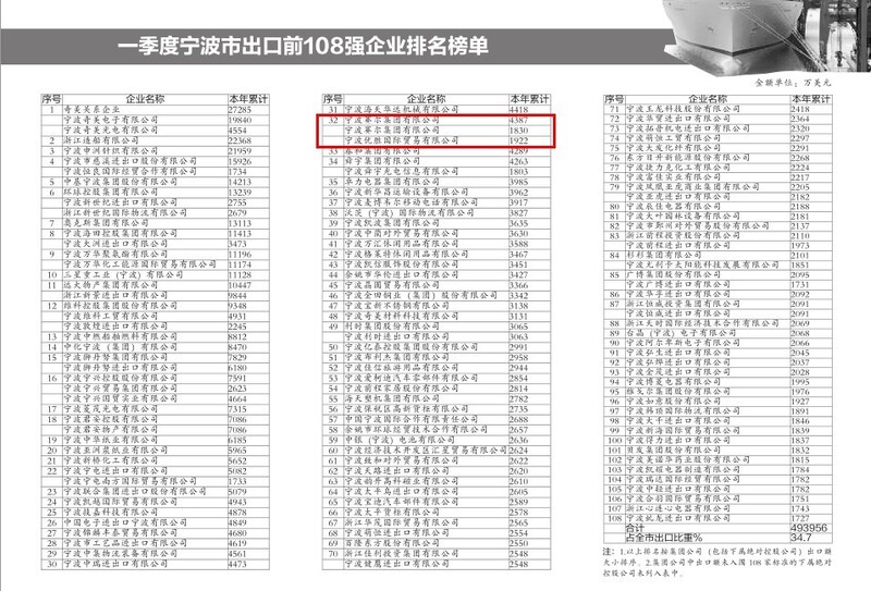 一季度寧波進出口108強榜單發布,我集團排名大幅上升