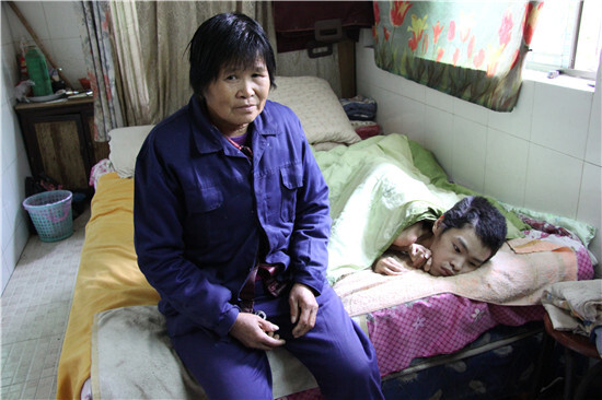 簡單的捐助儀式過后,我們在環衛所許主任的帶領下去了其中一位較為困難的環衛工人——張學榮家里。令我們萬分詫異的是:他的家竟然在不足10平方的公共廁所的管理房內,房內只有一張小床和一張小桌子。床上躺著的是他的小兒子——張利新,今年23歲,他在10歲的時候開始肌肉萎縮,常臥病在床。很難想象這15年動彈不得的日子他是怎么熬過來的,他那無助的眼神甚至讓我們不敢直視。張學榮的妻子是公廁保潔員,平時除了要清掃廁所外,還要照顧自己的小兒子。在我們臨走之時,張利新帶著虛弱的語氣對我們說了一聲:“謝謝。”這是他當時從頭到尾唯一說過的一句話,讓我們倍感心痛。