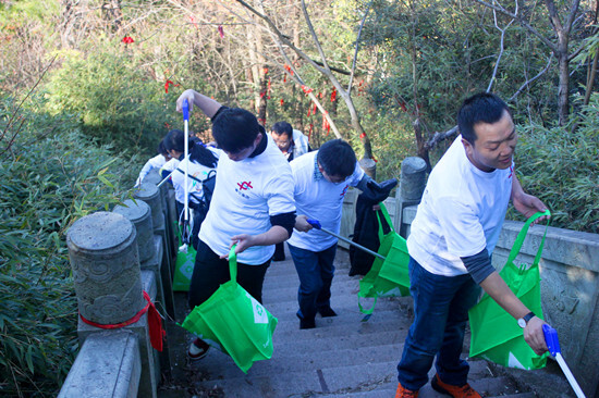 早上9點,一行30人抵達位于義烏后宅的德勝巖,開始爬山健身、清潔環境之旅,希望以實際行動宣揚健康、環保理念,踐行綠色生活方式。一路上,大家一邊觀賞冬日美景,一邊撿拾登山石階上和兩旁樹木叢中的煙頭、塑料袋、礦泉水瓶等難以降解的生活垃圾,努力還大自然一片潔凈。