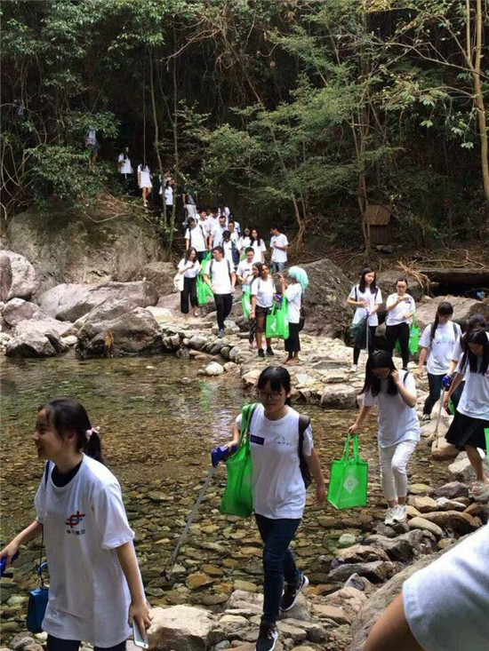 上周日上午,賽爾同事們和寧大留學生統一換上“山野清風”隊服,搖身一變成為一支支環保小分隊,來到美麗的龍觀鄉中坡山,一路撿拾沿途的各種垃圾。中坡山森林公園內秋葉繽紛,溪流淙淙,環境清新怡人,山林中到處彌漫著濃郁的桂花香,沁人心脾,吸引大家不時駐足觀賞。大家一邊拾垃圾,賞美景,一邊交流國內外風俗趣事和求學工作感想,相互之間迅速熟悉起來,紛紛互換聯系方式,相約保持溝通。路上,偶遇另外一群身背竹籃的志愿者,大家愉快地合影留念。