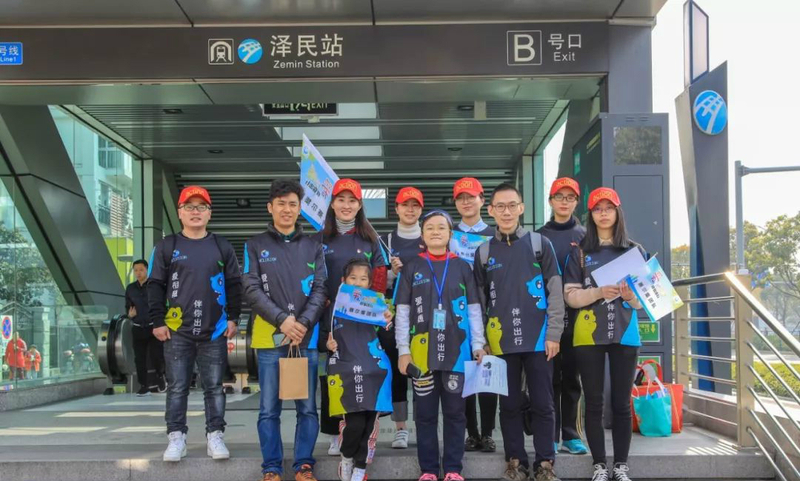 上午9點,賽爾志愿者在澤民地鐵站與星寶家庭匯合,在直播主持人帶領下,向群眾宣傳自閉癥和無障礙出行的相關知識,并協助星寶乘上地鐵,幫助他們順利抵達四明中學運動場。