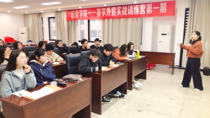 開班典禮之后,賽爾集團的外銷副總監(jiān)兼賽爾學(xué)院內(nèi)部講師王穎為同學(xué)們帶來“賽爾班”第一講——《外貿(mào)流程實務(wù)及客戶開發(fā)與維護》。講師為同學(xué)們介紹了企業(yè)中的外貿(mào)全流程,并詳細講解了如何寫開發(fā)信、如何報價議價、如何開發(fā)與維護客戶等實際案例。課堂上同學(xué)們認真筆記,積極聆聽,聽完后紛紛表示來自企業(yè)業(yè)務(wù)一線的老師帶來的分享是對學(xué)校理論課教學(xué)的良好補充,不僅讓他們對整個外貿(mào)行業(yè)有了直觀的認識,還能思考自己未來擇業(yè)的方向。