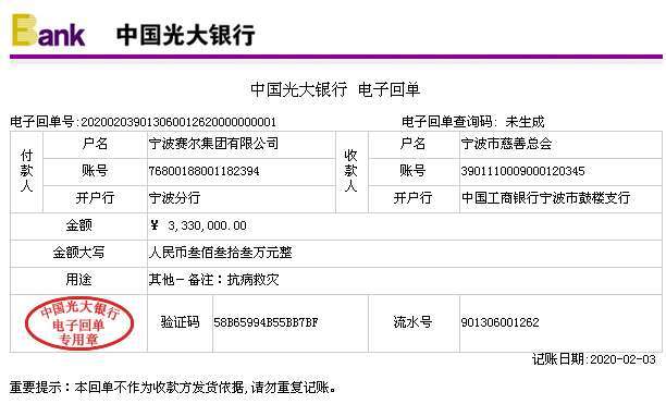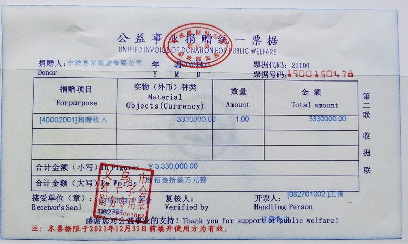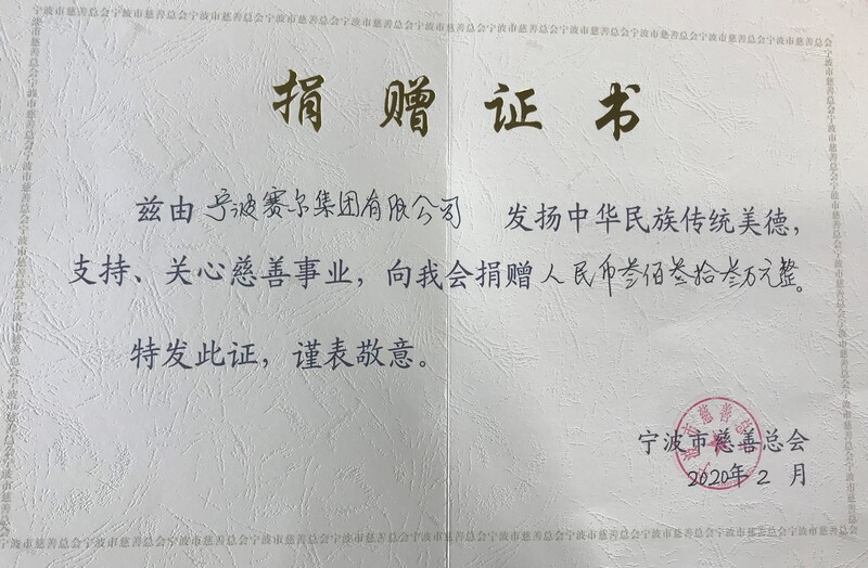 此前,集團(tuán)董事長(zhǎng)徐平炬先生也通過寧波民建市委會(huì)同心慈善基金捐贈(zèng)30萬元用于抗擊新冠疫情。