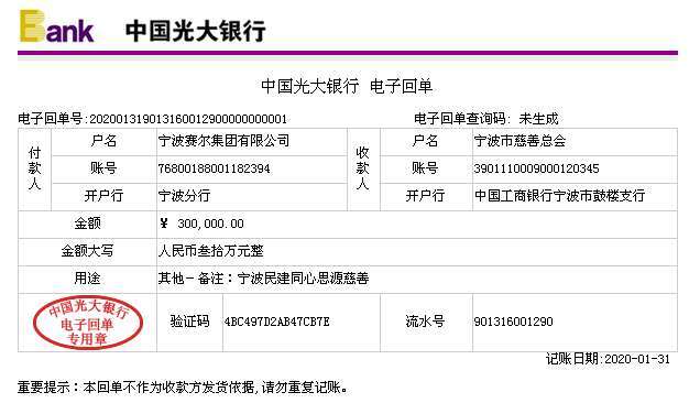 寧波市慈善總會(huì)捐贈(zèng)電子回單