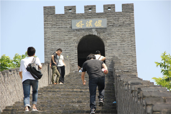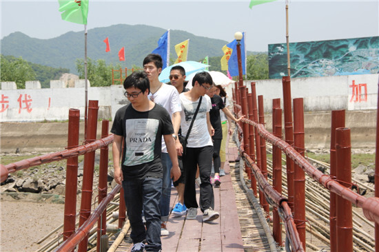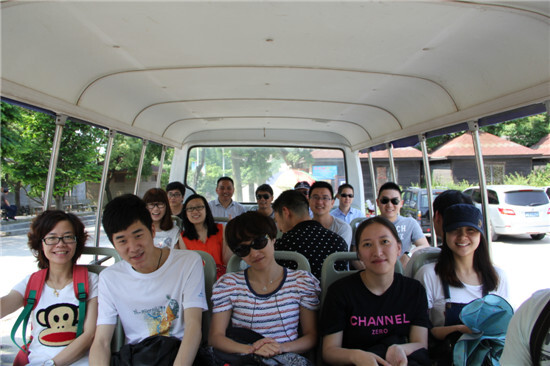 太陽鏡,遮陽傘,防曬霜,想必大伙都一樣不落了。5月25號,賽爾國貿(mào)(寧波運營中心)19人的大隊伍,在徐總的帶領(lǐng)下,來到了寧波奉化黃賢森林公園,開始挑戰(zhàn)氣勢雄偉的海上長城!整理隊伍準備出發(fā),這第一個挑戰(zhàn)就來了。原來,從各位下車點到海上長城的起點,要經(jīng)過一段陡峭的山坡。大伙考慮到今天的主要任務(wù)是“不到長城非好漢!”,所以就安排坐特制觀光bus上山!