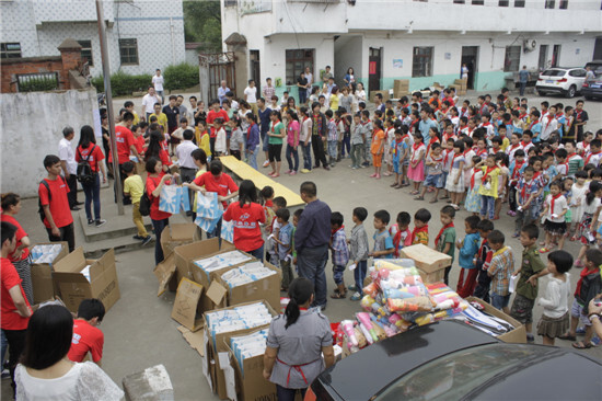 當天天氣異常悶熱,但絲毫沒有減少志愿者們的熱情。上午9:10分愛心捐贈活動正式開始,大家積極有序地給小朋友們分發(fā)物資。當天和我們一同前往的還有義務市弘寶行、義務市新生代協(xié)會、義務藍俊志愿者協(xié)會等志愿者。
