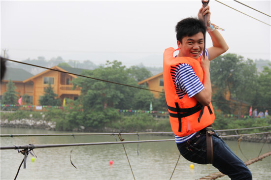 高空溜索,面對著鐵索下湍流的急水,你害怕了嗎?但看這位童鞋,似乎玩得很開心嘛~~~