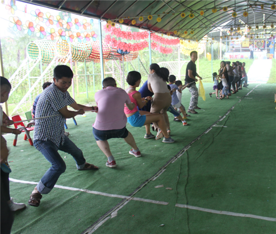 親子拔河比賽,把整個(gè)游戲推向高潮,各位辣爸靚媽們帶領(lǐng)自己的孩子使出渾身解數(shù),力圖把對(duì)方拉到自己的陣營(yíng),三局兩勝,我們的紅隊(duì)最后獲勝。