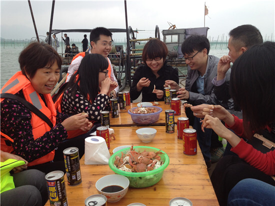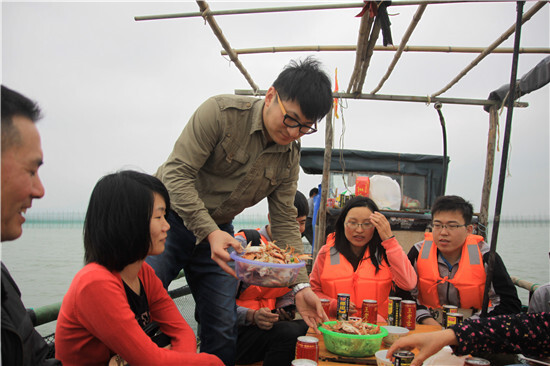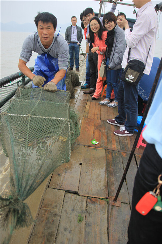 任船身隨浪搖擺,享涼爽海風(fēng)吹拂,馬達(dá)聲里,陸地逐漸退遠(yuǎn),極目遠(yuǎn)眺,前方海天一色,煙雨濛濛。殷師傅為大家講起這里的人文地理、海鮮趣聞如數(shù)家珍,大家也聽(tīng)得出神。船老大在大家的大呼小叫中嫻熟地收網(wǎng)捕魚(yú),蝦兵蟹將在網(wǎng)籠中活蹦亂跳。大家賞海景品海鮮,其樂(lè)融融。