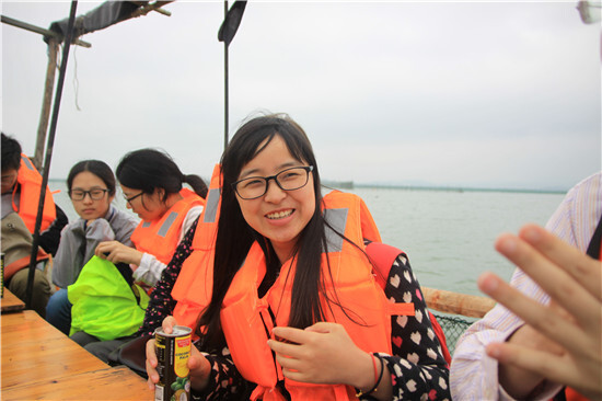 大家興致勃勃地看船老大嫻熟地收網(wǎng)捕魚(yú)