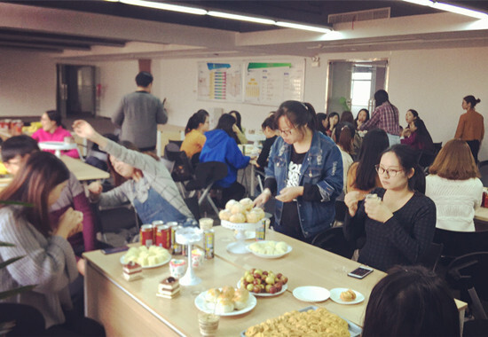 11月18日,優勝國貿迎來11歲的生日,當天下午,寧波義烏兩地都準備了美味的下午茶,優勝同事歡聚一堂,共同慶祝。
