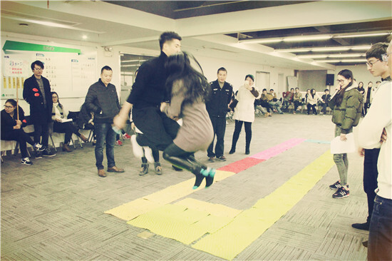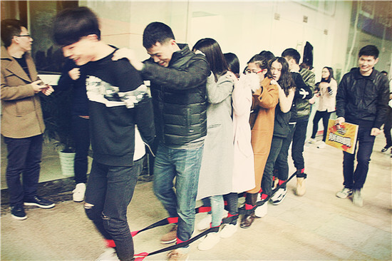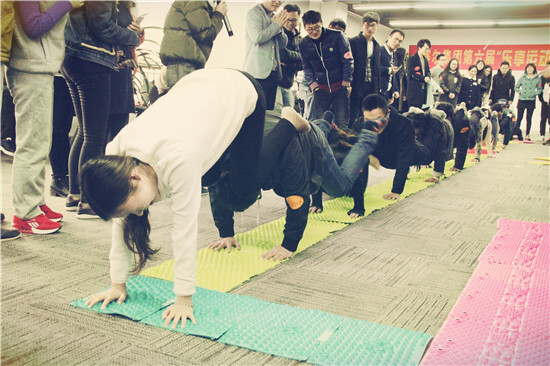 指壓板接力賽被冠以“不愿回憶之痛”的稱號,在一陣鬼哭狼嚎中,雙人合跳跳繩、旋轉的呼啦圈、忍痛背著妹子奔跑著的“猛男”、團隊首尾相接組成的人體長龍輪番上演,為這項游戲打上了痛并快樂著的標簽。