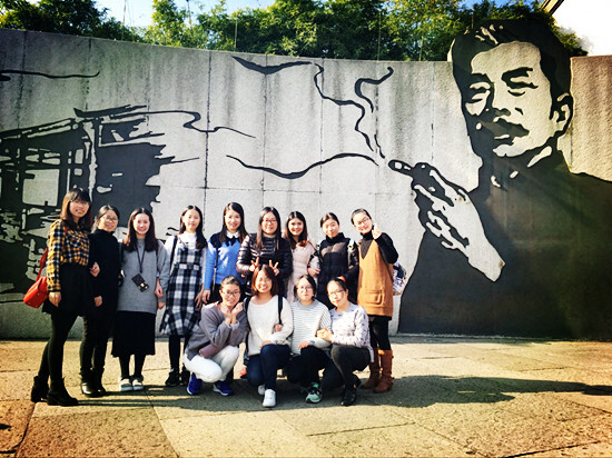 我們的第一站是魯迅故里。與日新月異的城市不同,這里給人的感覺像是幾十年前的古鎮,帶著濃濃的江南水鄉的韻味。青灰色的石板路,古樸的建筑群,狹窄的水道上烏篷船三三兩兩地停著。此時行人并不算多,街上彌漫著臭豆腐的香味兒,充斥著小商販叫賣的聲音,展現了這個古鎮蘇醒的樣子。走進魯迅故居,不愧是昔日的大戶人家,雖然不及當日的繁盛,卻無處不記錄著這個偉大歷史人物的點點滴滴。破舊的課桌椅、整齊的菜畦帶我們走進了三味書屋和百草園。古老的鎮子暈出一片屬于紹興的棕黃色,記憶中的人兒還在吃著茴香豆,喝著溫黃酒,聽著屬于烏篷船的故事……