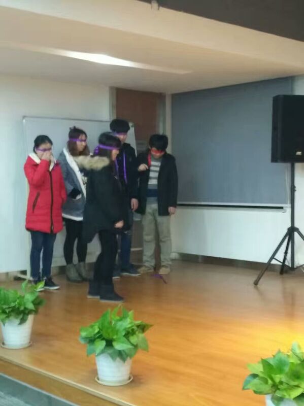 第二個(gè)游戲是“蒙眼過障礙”,選了兩名同事蒙住眼睛,其他同事充當(dāng)指揮。被蒙住眼睛的選手在通過障礙時(shí)就會(huì)做出各種滑稽的搞笑動(dòng)作,令人捧腹大笑,后來同事們悄悄把障礙物給撤了,但是被蒙住雙眼的同事毫不知情,還是做著夸張的動(dòng)作,非常搞笑。