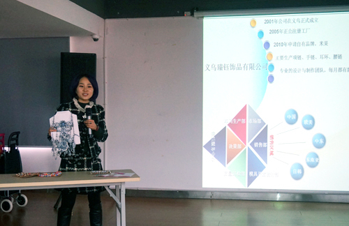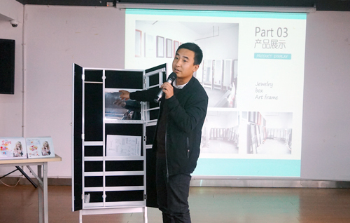 金華龍飛工藝品公司專業(yè)生產(chǎn)銷售珠寶柜、相框、鏡框等工藝產(chǎn)品。會(huì)上,總經(jīng)理李文慧重點(diǎn)介紹了新產(chǎn)品多功能珠寶柜,外觀可以照鏡子,里面則可以掛首飾、毛巾、毛衣鏈等各種飾品配件,新穎獨(dú)特,設(shè)計(jì)性和實(shí)用性兼具,獲得在場業(yè)務(wù)人員的一致青睞。
