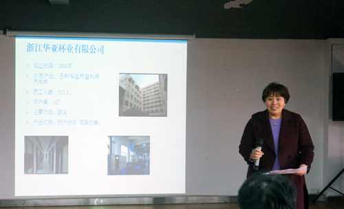 浙江華亞杯業(yè)公司專注國內(nèi)市場的真空保溫器皿研發(fā)和制造,負(fù)責(zé)人朱秋嬋在會(huì)上重點(diǎn)介紹了幾款近期暢銷的保溫杯生產(chǎn)工藝和競爭優(yōu)勢。