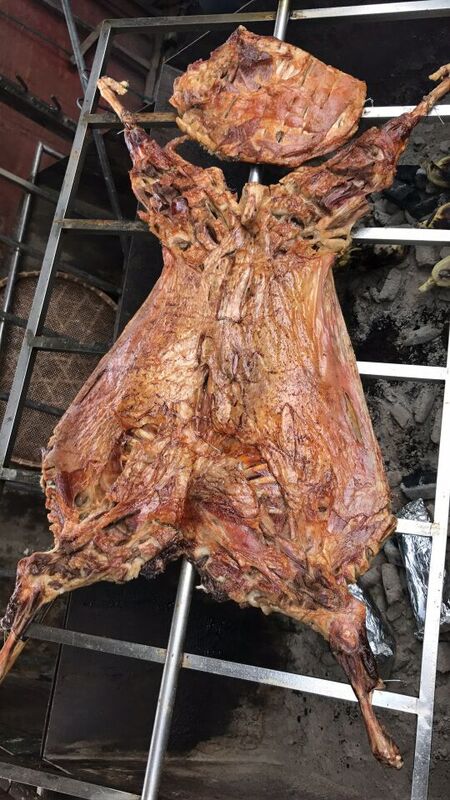 此次部門活動的重點就是烤全羊大餐。由于醫院要求必須空腹體檢,所以很多一早上都沒有進食的小伙伴們很快就開動了起來。主要負責烤烤全羊的是一位店里的大爺,那手法甚是嫻熟,一頭羊被烤得可謂是色香味俱全,再加上碰到一群已經餓的前胸貼后背的小伙伴們,烤全羊一上桌就被大家一掃而空。之后再配上當地的農家樂美食,一頓美味的大餐很快就在大家的歡聲笑語中被消滅了。