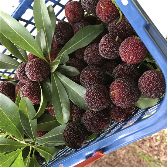 上午10點,我們一行17人驅(qū)車抵達(dá)余姚梁弄的邱家楊梅基地。放眼望去盡是漫山的楊梅樹,小伙伴們一下車就立馬迫不及待地提籃上山,采摘楊梅。枝頭一顆顆紅得發(fā)紫的楊梅,甜中帶酸,刺激著每個人的味蕾。大家一邊摘一邊吃,籃子里始終滿不起來。很快大家被楊梅填滿了肚子,索性也不摘了,直接到山下選一籃專業(yè)師傅摘得黝黑黝黑的楊梅。