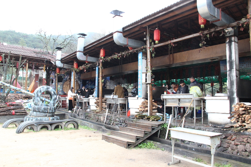 流完汗自然是少不了美食的犒勞,為了體驗以前的土灶樂趣,我們把午餐定在了山莊。原來拔河的四組人員各自采購食材,大家分工明確,洗菜、切菜、燒火、包餃子、做菜。歷經(jīng)4個小時的忙碌,大家都玩得十分開心,吃得非常盡興。