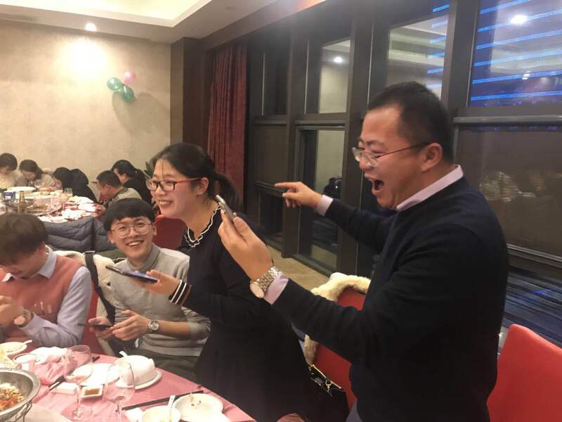 會議結束后,大家轉場酒店就餐,我們還非常榮幸地邀請到了集團領導徐總和朱總。不同于會議時的認真專注,餐桌上的氛圍格外輕松愉快,“搶紅包大戰”更是讓現場沸騰起來。
