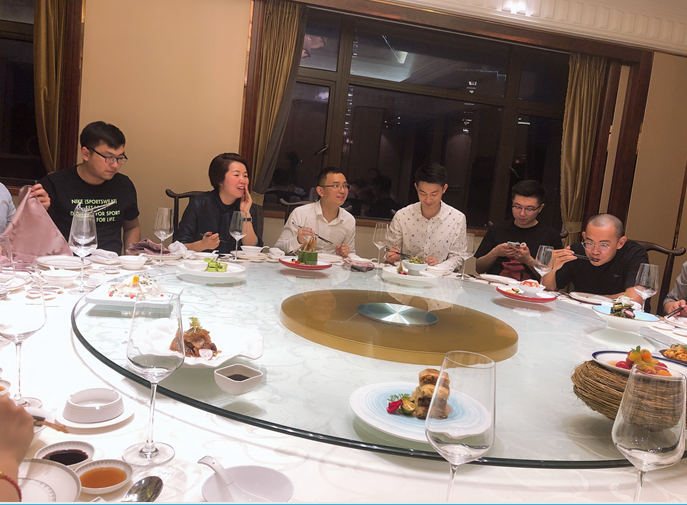 在吃飯的時候我們開玩笑嘮家常,就像一個大家庭,沒有級別的障礙,暢所欲言。不知不覺已經(jīng)很晚了,大家喝得盡興、聊得暢快、聚得開心。