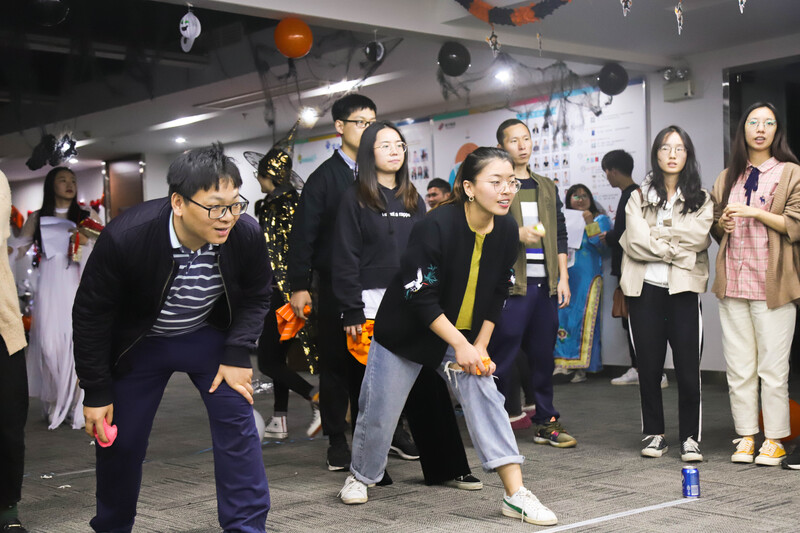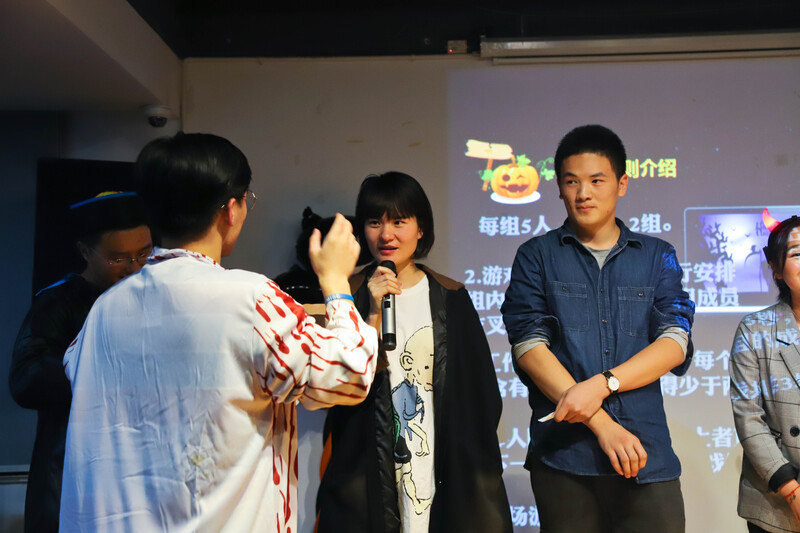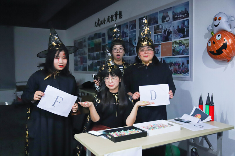 當神秘的暗夜降臨,萬圣節的狂歡之夜在下班的腳步聲中悄然而至。10月30日,由愛樂社和舞蹈社聯合舉辦的萬圣節cosplay狂歡夜在四樓培訓室如期舉行。活動還未開場,各樓層下班的小伙伴早已按捺不住期待的心,而此時隱匿在廊道兩隅的兩大門鬼早已整裝待發,畢竟這是展現他們精心裝扮的最好時機。恐怖的音樂,突如其來的鬼怪,讓沒有準備的小伙伴著實體驗了一把鬼節前夜的刺激,走廊外此起彼伏的尖叫聲證明了兩大門鬼的實力。