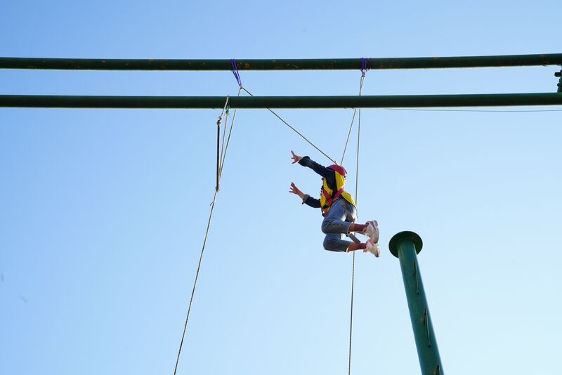 早晨,一聲激昂的哨聲響起,賽爾新人在總教練的指揮下迅速分成6個戰(zhàn)隊。一二!一二!一句句振人心弦的齊聲吶喊;咚咚!咚咚!一聲聲響徹土樓的球體撞擊,我們第一個項目——“鼓動人心”開始了。我們在一次次失敗中總結自身調(diào)整策略,在一次次彎腰撿球中站直身體擺正位置。隨后開始的驚險倒計時則考驗了我們的流程管理能力和快速協(xié)調(diào)能力。第三個項目是高空抓桿,大家一開始雖然都有些害怕,但最后所有成員都爬上了高柱,無人退縮,這對于一個大團隊來說,是一個多么值得欽佩的成果! 接下去的極速60秒要求每個隊伍必須在60秒內(nèi)破解一個繩圈內(nèi)的30張神秘卡牌,且繩圈內(nèi)只能有一人來觸摸卡牌及繩子,團隊成員只能在圈外幫助圈內(nèi)成員。直到比賽結束時,教練告訴我們原來規(guī)則是可以打破的,圈內(nèi)成員可以把繩子扯掉,這讓我們意識到突破界限和不墨守成規(guī)有多么的重要。第一天的最后一個項目是用拼接墊來搭建高塔。大家瘋狂地堆高度,但是忘記了建筑材質(zhì)和場地風力,這個項目讓我們明白了有時候地基和結構才是成功的關鍵,一味追求高度和速度只會潰敗涂地。