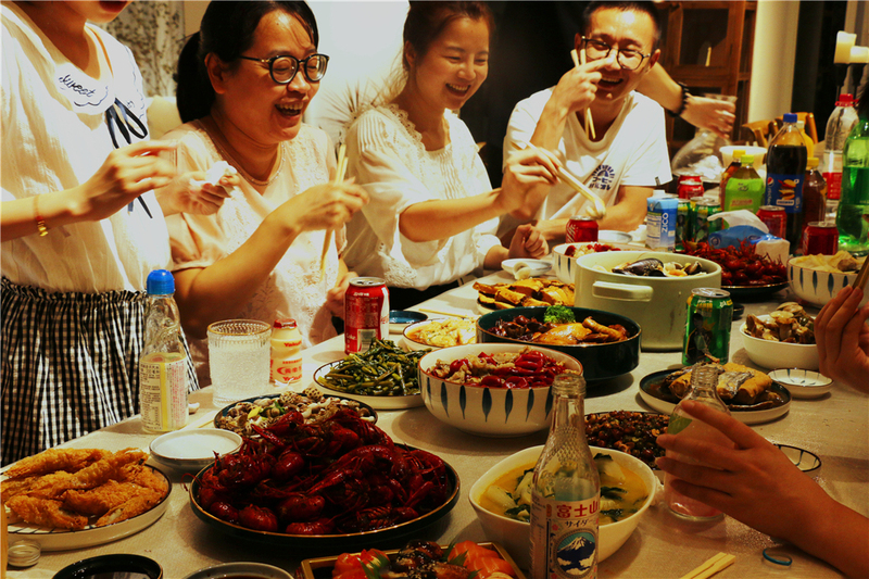 結(jié)束以后,我們?cè)贛rs. Zhang開(kāi)啟了歡樂(lè)的下午茶時(shí)光,沒(méi)有什么比在空調(diào)房里的冰飲和甜品更加使人感到快樂(lè)了。之后我們到盒馬生鮮采購(gòu)了滿滿當(dāng)當(dāng)?shù)氖巢?。之后則是這次團(tuán)建的重頭戲——轟趴,梭子蟹、小龍蝦、牛蛙,再配上特調(diào)的雞尾酒,我們把酒言歡,氛圍正好。