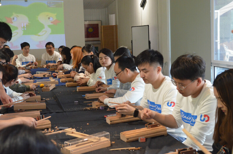 餐后是手工筷子制作環節。遠離大城市的喧囂,靜下心來,用大自然饋贈的最有溫度的材料,經過刨削、打磨、刻字、上蠟這幾道工序,制作出那雙獨一無二的筷子,愿優德的小伙都能“筷”樂常伴