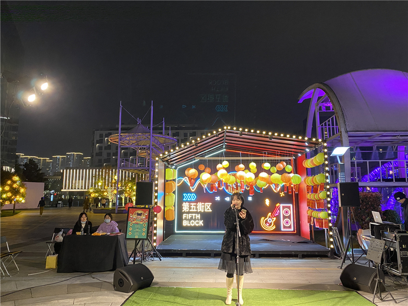 3月12日晚,愛樂社成員來到位于文化廣場的橙邑集市,趕赴一場早已約好的“音樂甜點之旅”。晚風夾雜著些微水汽,穿行于飽足人兒的閑話與談笑中。身后搭起的方寸地界里,絡繹不絕地往來著猜燈謎的人們。階前劃出一片人造草坪,暖橘色的光似一片薄薄的輕紗籠罩,一支麥克風靜默地立著、等待著。一首 《I don’t want to talk about it》拉開了本次街唱活動的序幕,吃瓜群眾漸漸圍攏,開始的羞澀膽怯在伴唱與掌聲中慢慢化為了動情與坦然。小朋友們是最忠實的“鐵粉”,有停下“座駕”駐足聆聽的,有主動上前伴舞的……我們的頭上懸著星星,他們的梨渦里也藏著星星。13首歌曲串聯起了如夢似幻的一小時表演,歌者與聽眾的心里鼓脹著暖洋洋的共鳴。