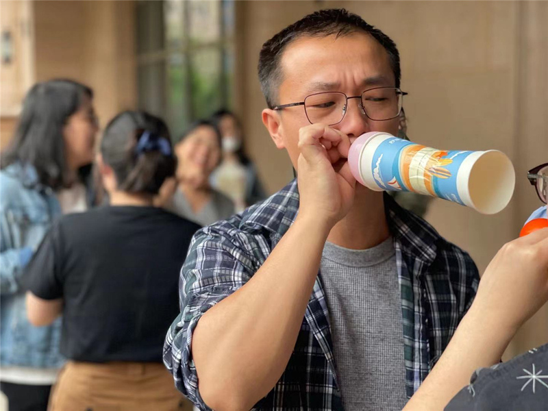 第二天又下起了小雨,我們只得取消原定景點,在酒店中進行了團建游戲。考驗手腳協(xié)調(diào)、平衡能力的“手忙腳亂”,讓大家真正體驗到了手腳并用的感覺;需要相互配合,相互溝通的“紙張傳遞”,大家八仙過海各顯神通,有摩擦頭發(fā)試圖產(chǎn)生靜電的,有悄悄沾點水增加粘性的,而裁判都睜只眼閉只眼,畢竟大家開心才是最重要的。經(jīng)過兩輪的角逐,兩隊打成平手,最終A隊在最后一局的“氣球接力”中獲得了游戲的勝利,同時也收獲了紅包。
