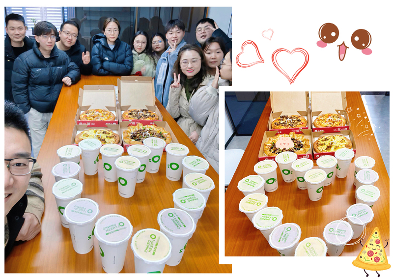 所有綠時(shí)業(yè)務(wù)一部員工來到茶水間,陽(yáng)光恰到好處地照在大家臉上,每個(gè)人臉上洋溢著喜悅,工作熱情迅速都被調(diào)動(dòng)起來。大家喝著鮮榨果汁,吃著披薩,共同慶祝部門成果,并暗自下定決心為新的目標(biāo)努力。桌上的下午茶代表著今年新的開始,整個(gè)部門都干勁滿滿,充滿著對(duì)新的一年的期待。