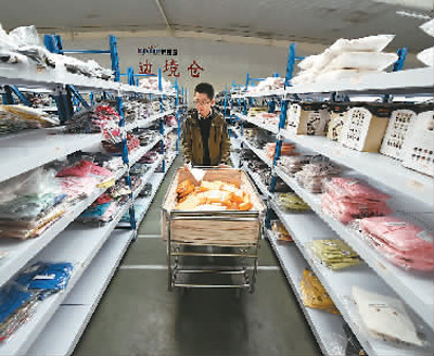 2015年11月18日,在黑龍江俄速通公司的邊境倉,工作人員在分揀貨品。