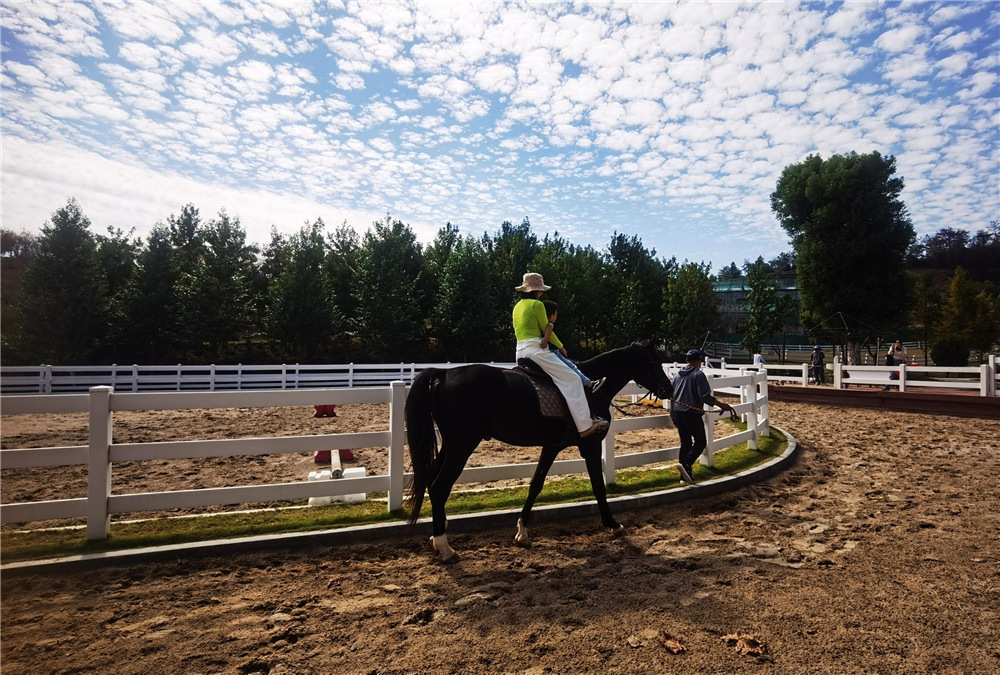 10月22日上午,車行一個多小時后,我們到達了武義縣。第一站,我們前往武義花田小鎮(zhèn),丘陵蜿蜒、山水秀麗的小山谷中,一幅以無數(shù)花朵為顏料、以大地為畫布的巨大畫作豁然呈現(xiàn)在藍(lán)天白云下。不同顏色的花朵,間隔有致,頗具匠心,絕美壯麗,賞心悅目。第二站,我們來到朵朵牧場。先投喂了顏值超高的羊駝,別看羊駝外表溫順,其實藏著一顆有趣的靈魂,時不時就沖你“呸”上一口。投喂完可愛的矮種馬、山羊、鴿子,我們還嘗試了騎馬。