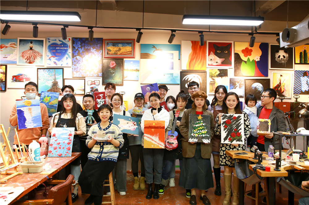 11月19日上午,迎著蒙蒙細雨,我們一行人順利抵達藝術工作室。習慣了坐在電腦面前的小伙伴們對藝術畫作充滿了好奇,迫不及待地自行選擇了肌理畫、油畫等不同風格的DIY畫作。老師先帶大家觀摩了色彩各異的成品,大家便開始搜索自己想臨摹的畫作。在沒有接觸之前,大多數人感覺手繪很簡單,但是自己動手調色之后才發現不是那么容易,里面包含了色彩搭配、透視關系、調色原理等專業知識。