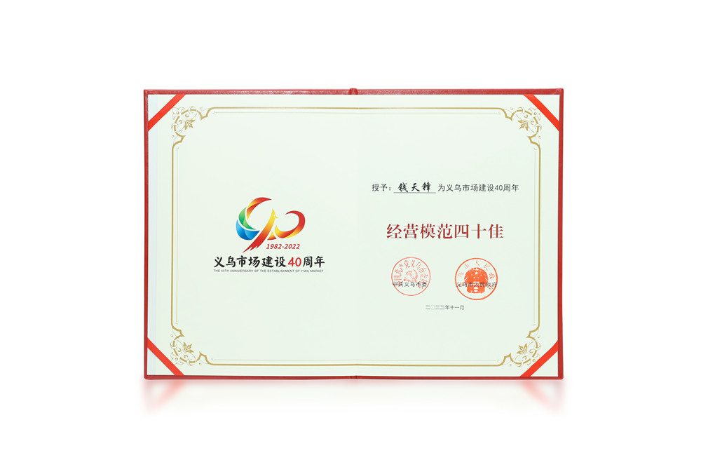 17年,與義烏市場互相成就 ——錢天鋒副董事長榮獲義烏市場建設40周年“經營模范四十佳”