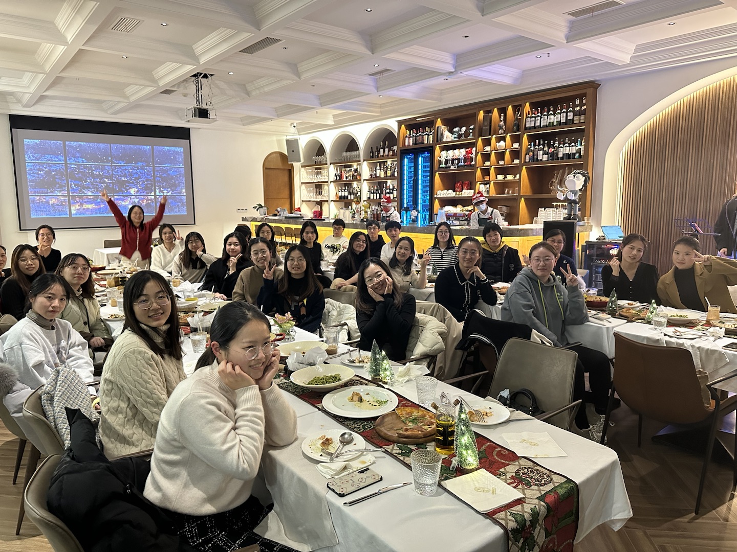 歲末鐘響,圣誕氣氛漸濃,雖然精心策劃的小劇場活動(dòng)因?yàn)橐咔樵虿坏貌蝗∠耍俏覀兊暮眯那榻z毫沒有受到影響,結(jié)束了一天的工作,大優(yōu)勝財(cái)務(wù)小伙伴們一起前往Ginkgo西餐廳共進(jìn)晚餐。一進(jìn)入餐廳內(nèi),大家就被餐廳內(nèi)布置的圣誕裝飾吸引,這里環(huán)境幽靜,伴隨著輕音樂,忙碌了一天的身心也在此刻被瞬間治愈。待全部人落座后,駐唱小哥哥為我們帶來了一首首美妙的歌曲。