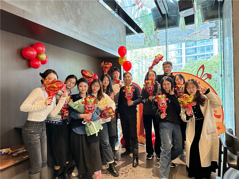 聚餐地點選在了希索扒房,一家有格調有氛圍的輕奢餐廳。踏進包廂,映入眼簾的是繽紛的氣球,兔年元素的紅包墻,豪華的年會獎品,還有屏幕上大家的新年寄語,精心的準備籌劃讓這場年會更具溫度。進入餐廳后,我們先用拍立得和小禮炮進行了打卡簽到。雞樅菌炸蝦、煎鵝肝、火腿拼盤、烤牛排……隨著一道道精美的菜品上桌,經(jīng)典的抽獎環(huán)節(jié)也隨之而來。抽獎后是獲優(yōu)和晉升人員表彰環(huán)節(jié),蟬的幼蟲脫殼羽化為健壯的成蟲,寓意公司新生力量源源不斷進入,義烏人資部門的小伙伴詩宇也實現(xiàn)從新人到中堅力量的跨越;而在義烏招聘組持續(xù)發(fā)光發(fā)熱、一馬當先的萱萱也被晉升為人力資源部的中級專家。吃飽喝足后來到了激動人心的壓軸大獎抽取環(huán)節(jié)。在萬眾矚目之下,最終大獎被新人楠楠斬獲。在歡聲笑語中,我們手持紅包和氣球拍了大合照留念。
