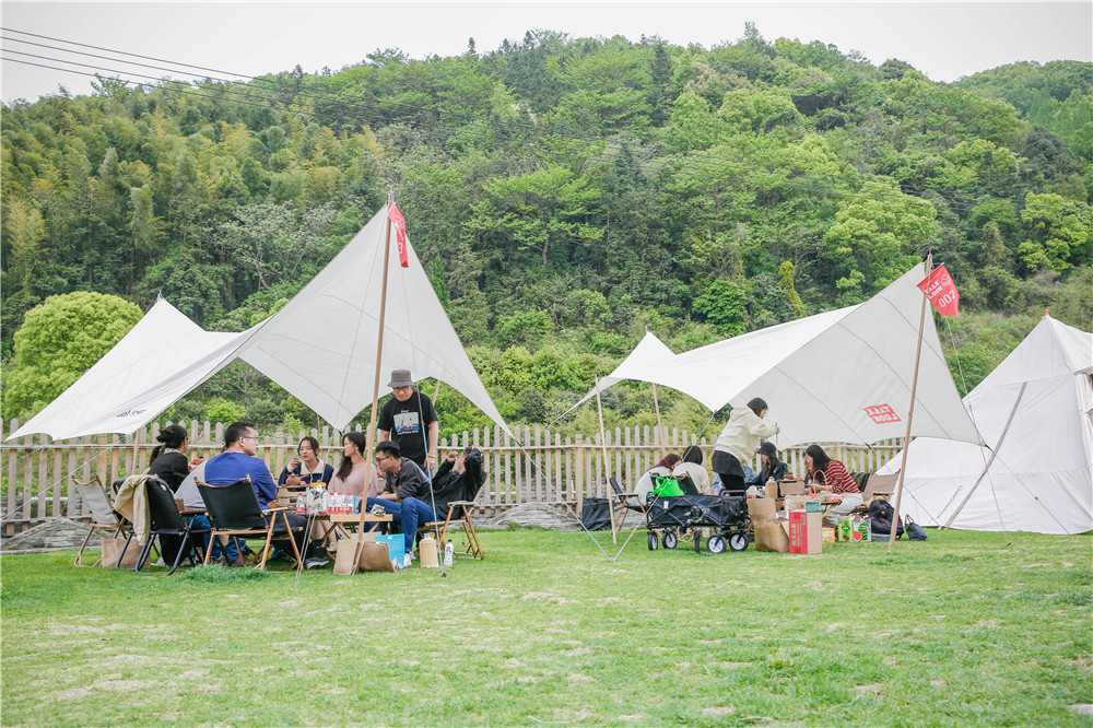 午飯后,陽光正好,隔著天幕曬得人暖烘烘的卻絲毫不刺眼。大家飲足飯飽愈發“懶洋洋”:有的慵懶地窩在躺椅上,裹緊外套準備小睡片刻;有的專心于圍爐煮茶,靜靜地烤著水果糍粑、品著香醇白茶、坐看云卷云舒;有的組團玩起了牛牛和雙扣,笑聲鬧聲歡呼聲響徹露營地;有的童心未泯,蕩起秋千、玩起滑梯、逗逗小動物,追著小朋友一起分享玩具車……偷得浮生一日閑,便在輕松閑適的團聚氛圍中消磨過去吧。正如策劃人小明哥所說,此次團建沒有任務,全憑意愿,大家都要有好心情!