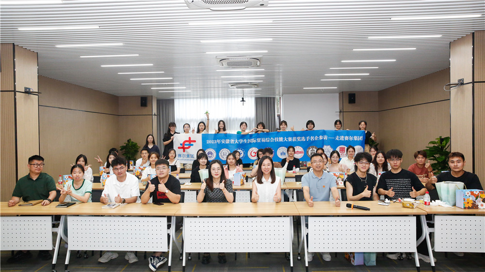 7月17-18日,2023年安徽省大學(xué)生國際貿(mào)易綜合技能大賽獲獎選手名企參訪——走進賽爾集團活動順利舉行。該活動由安徽財經(jīng)大學(xué)、安徽省大學(xué)生國際貿(mào)易綜合技能大賽秘書處牽頭,集團承辦。安財國貿(mào)學(xué)院教授,安徽省大學(xué)生國際貿(mào)易綜合技能大賽秘書長董桂才、系主任楊志遠、副教授徐磊蒞臨現(xiàn)場指導(dǎo),集團副總裁方永強,人資部蔣麗妮、陳天楊等熱情接待,來自安徽省11所高校的33位同學(xué)參加了本次活動。