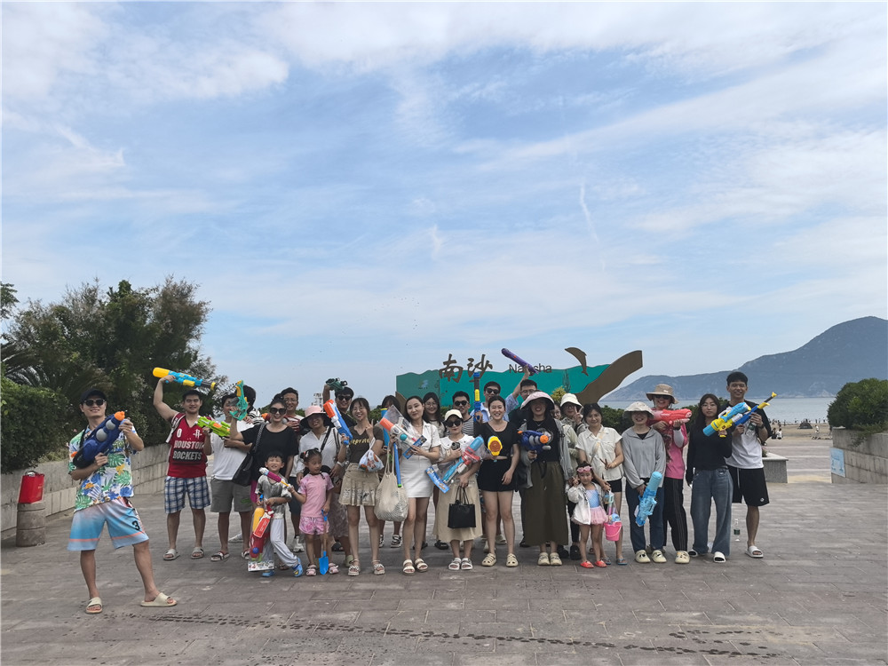 周六下午,我們一同前往南沙景區,大家“裝備齊全”,一人手持一支水槍,在海邊開啟了刺激的“水槍戰”。雖然有些遺憾因為天氣原因很多水上項目無法游玩,但清涼的海風海水、拍打的浪花、伙伴們的歡笑會一直鮮活地存在于每個人的記憶中。