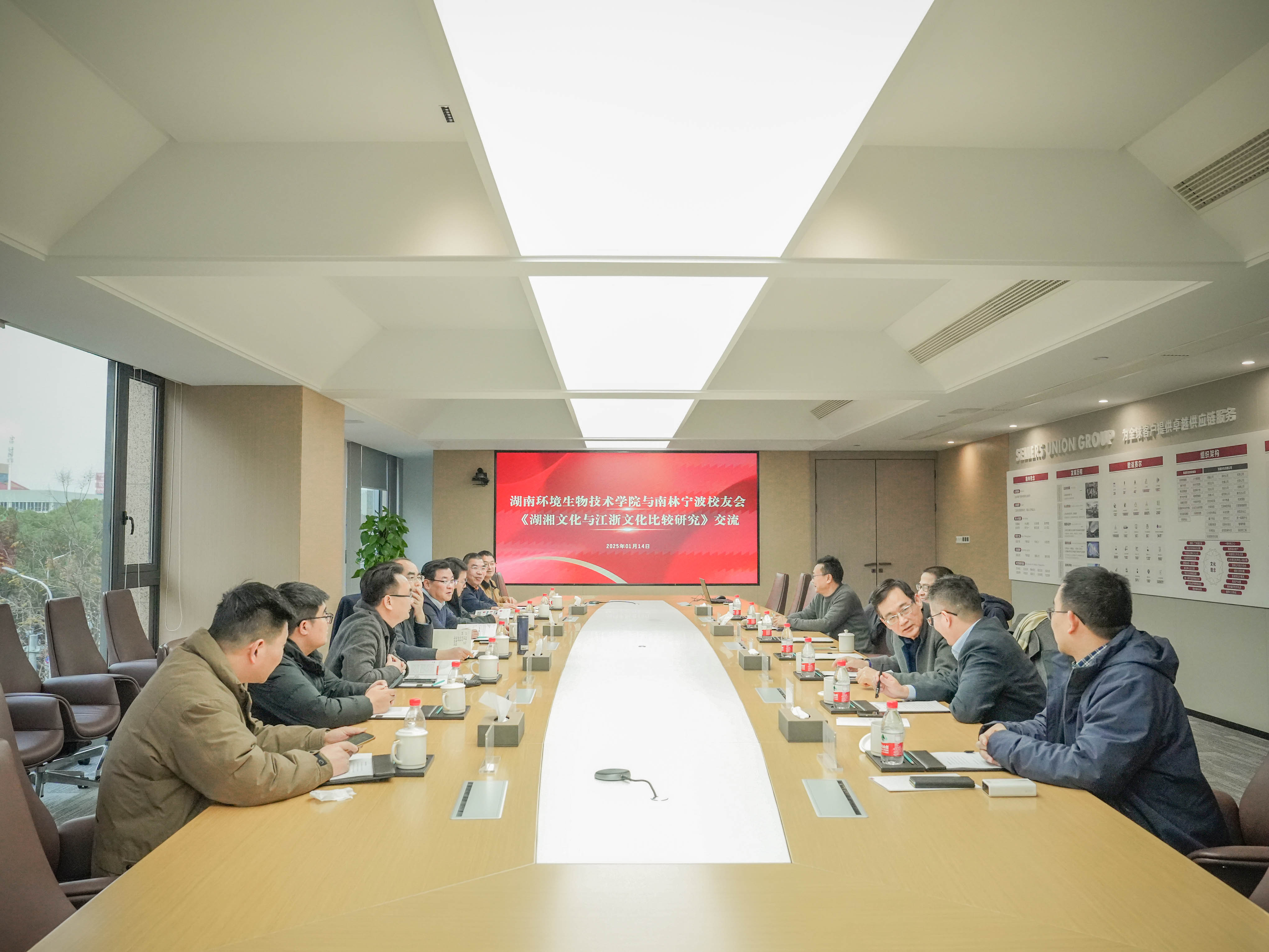 1月14日下午,湖南環(huán)境生物技術(shù)學(xué)院與南京林業(yè)大學(xué)寧波校友會聯(lián)合在賽爾集團(tuán)創(chuàng)新大廈利他之心會議室舉行《中國地域文化比較研究——湖湘文化&江浙文化》座談會。湖南環(huán)境生物職業(yè)技術(shù)學(xué)院黨委副書記、校長庾廬山帶領(lǐng)學(xué)院相關(guān)部門領(lǐng)導(dǎo),與賽爾集團(tuán)董事長徐平炬在內(nèi)的9位南林寧波校友參與此次活動并開展熱烈交流。