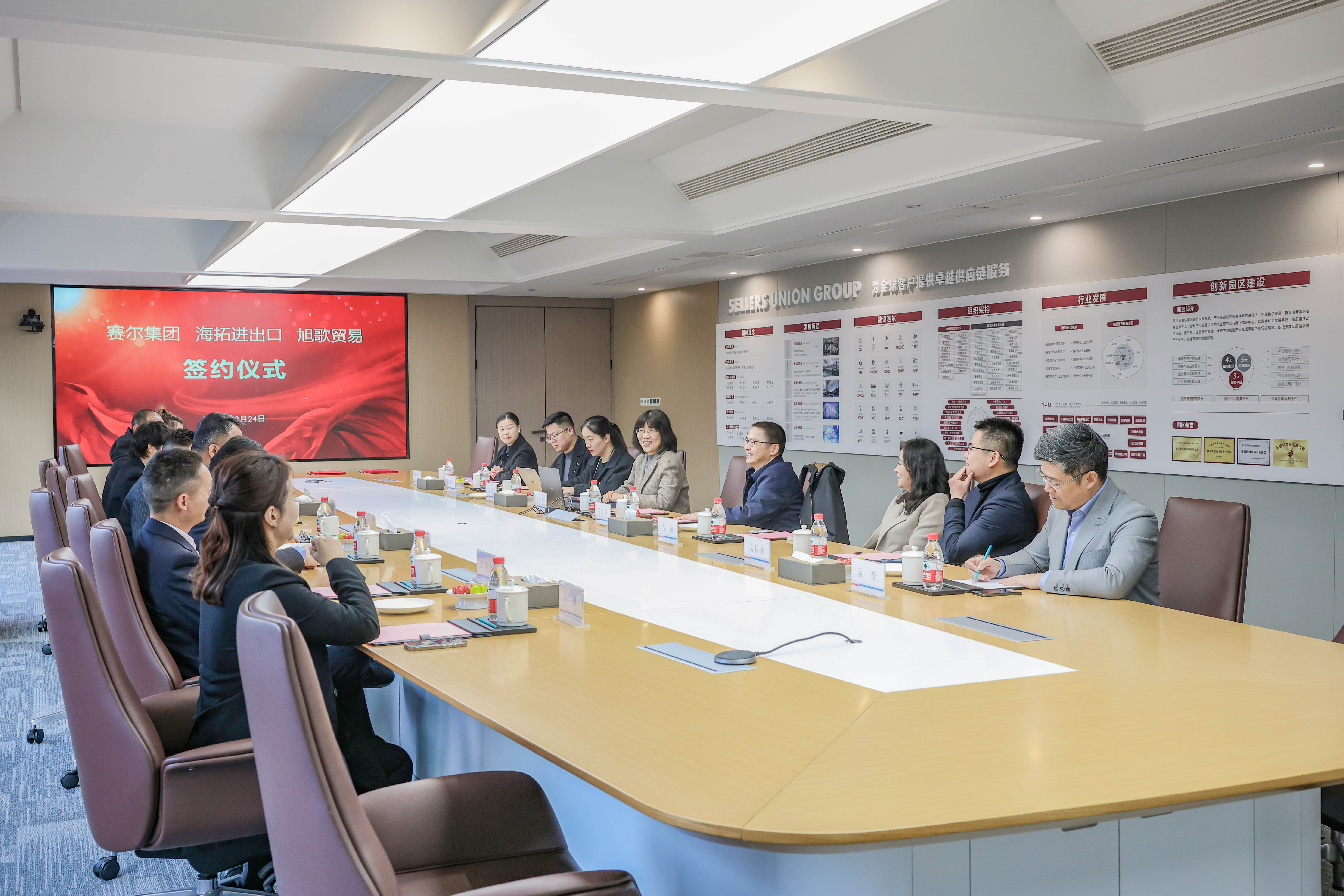 2月24日下午,賽爾集團與海拓進出口生態圈投資簽約、與旭歌貿易生態戰略合作簽約儀式在賽爾創新大廈利他之心會議室舉行。賽爾集團代表徐平炬、吳穎、王彩虹、孟祥龍、方芳、易青、陳秦淵、廖幼琴,海拓進出口代表應成軍、應鑫、王學偉、王琳,以及旭歌貿易代表湯旭陽、魯小平、李龍、董曉婷等共同出席活動。