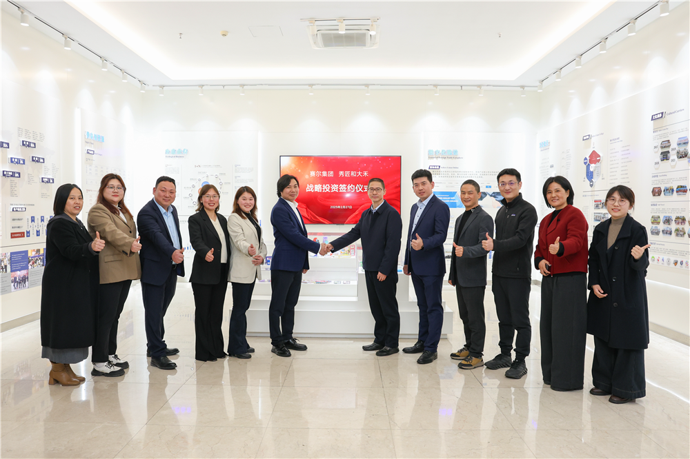 2月27日下午,賽爾集團對秀匠和大禾兩家企業戰略參股投資簽約儀式在義烏運營中心舉行。賽爾集團代表徐平炬、王鯤鵬、徐仁權、吳春燕、鄔佳毅,秀匠和大禾公司代表張俊慧、王小慶、張麗虹、張智源、李春華、姚笑添等共同出席簽約活動。