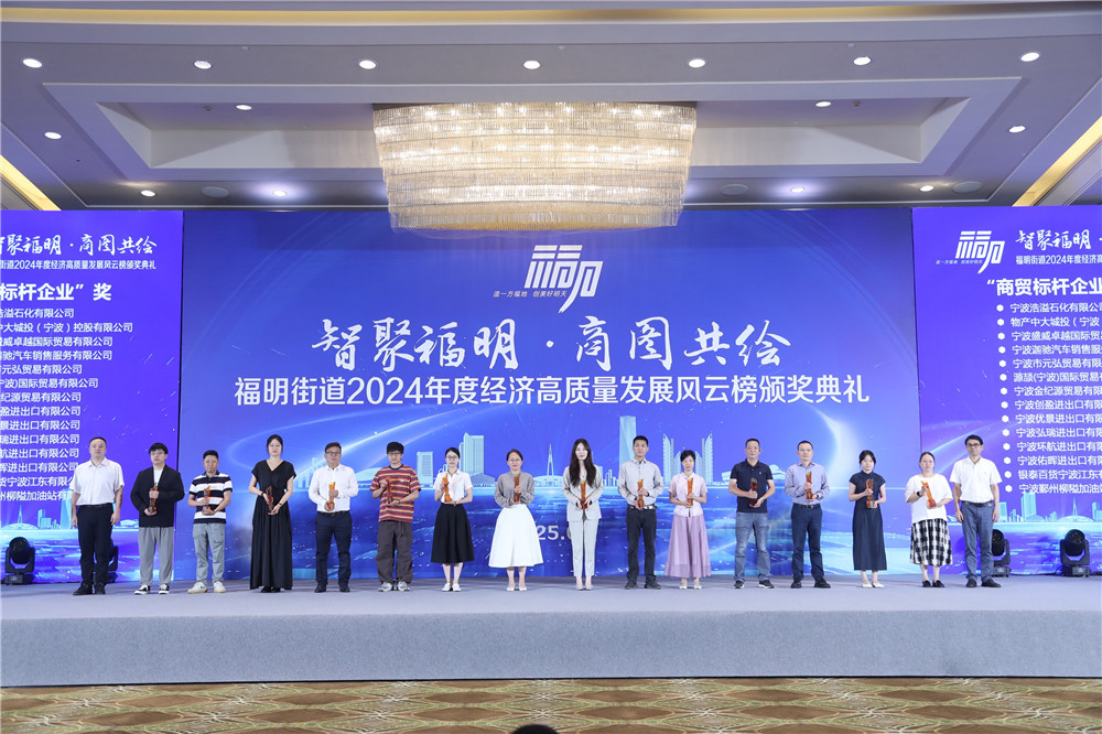 2025年5月30日,“智聚福明·商圖共繪”——福明街道2024年度經(jīng)濟高質(zhì)量發(fā)展風云榜頒獎典禮隆重舉行。鄞州區(qū)科技局局長、黨組書記虞文平,鄞州區(qū)委組織部副部長、區(qū)委人才辦常務副主任任甘、鄞州區(qū)福明街道黨工委書記劉剛等領導出席典禮。