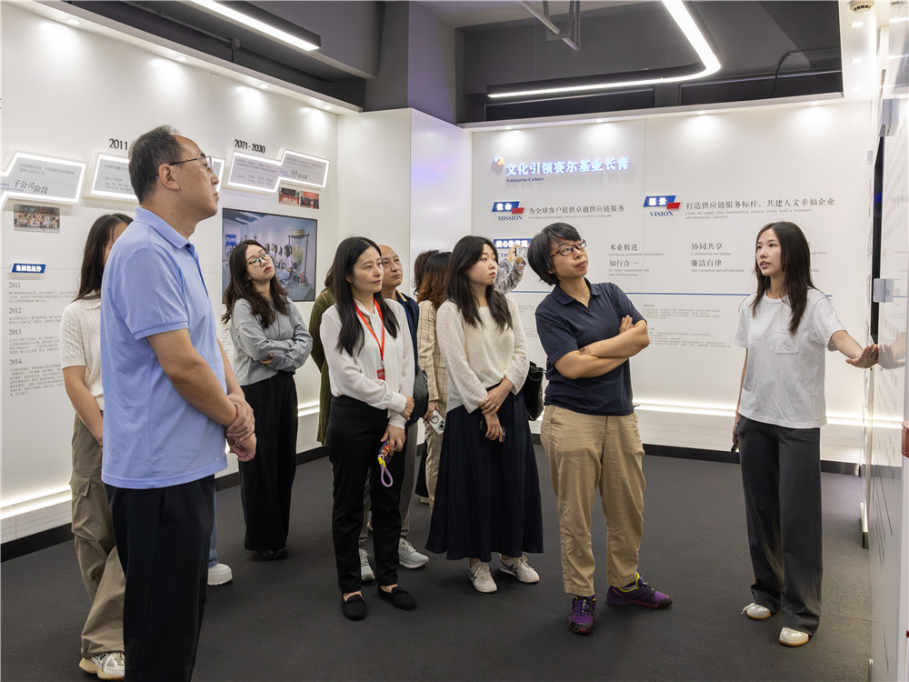 老師們首先沉浸式體驗(yàn)了集團(tuán)文化展廳,隨后舉行產(chǎn)教融合座談會(huì)。雙方展開研討,集團(tuán)副總裁方永強(qiáng)和優(yōu)遠(yuǎn)公司副經(jīng)理曾學(xué)俊分別站在集團(tuán)招聘角度和實(shí)際工作角度,回復(fù)了各校老師圍繞"跨境電商行業(yè)"和"校企合作"提出的疑問,收獲頗豐,為后續(xù)課程建設(shè)與合作開拓了新思路。